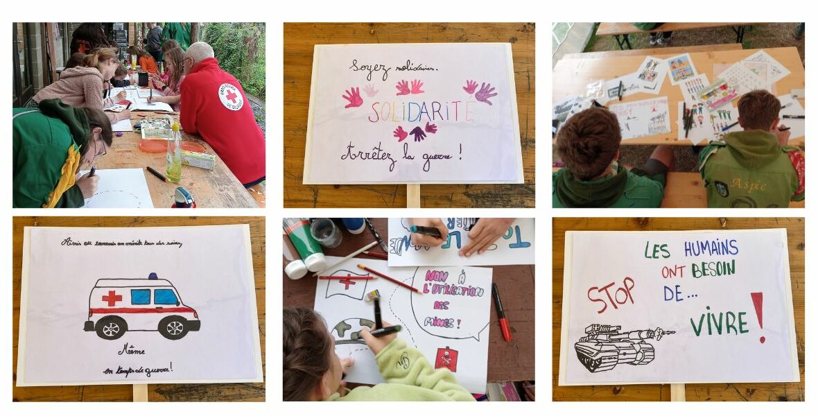 La Croix-Rouge de Belgique vient gratuitement animer vos jeunes avec un dispositif ludique adapté à leur âge pour leur permettre d’appréhender les conséquences humaines et environnementales des guerres et le rôle du droit international humanitaire. Ensuite, elle organise un atelier de création d’affiches. Les productions réalisées par les jeunes devront être relayées sur les réseaux sociaux utilisés par votre organisation.